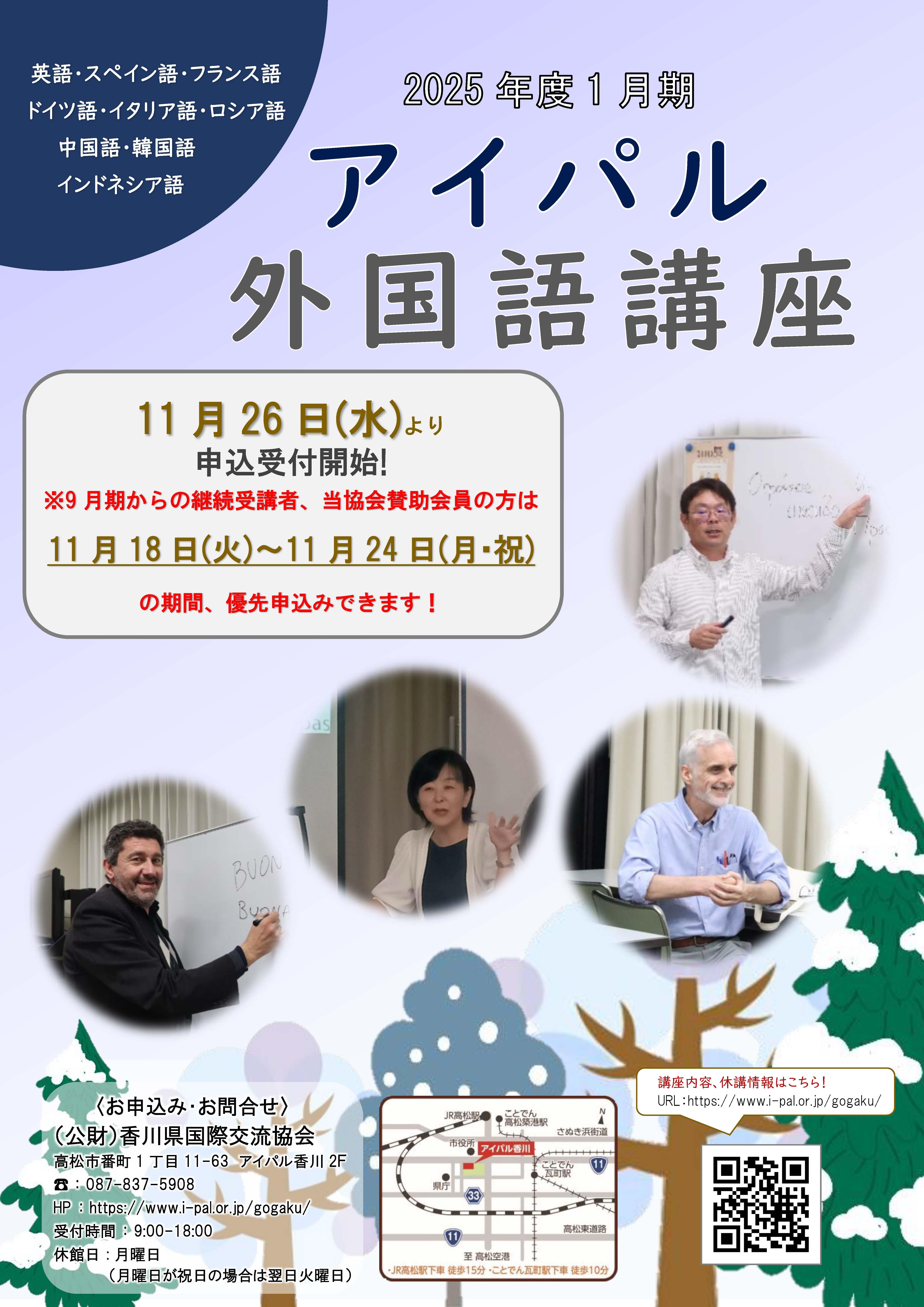 【Email:gaikokugo-kouza@i-pal.or.jp TEL:087-837-5908】