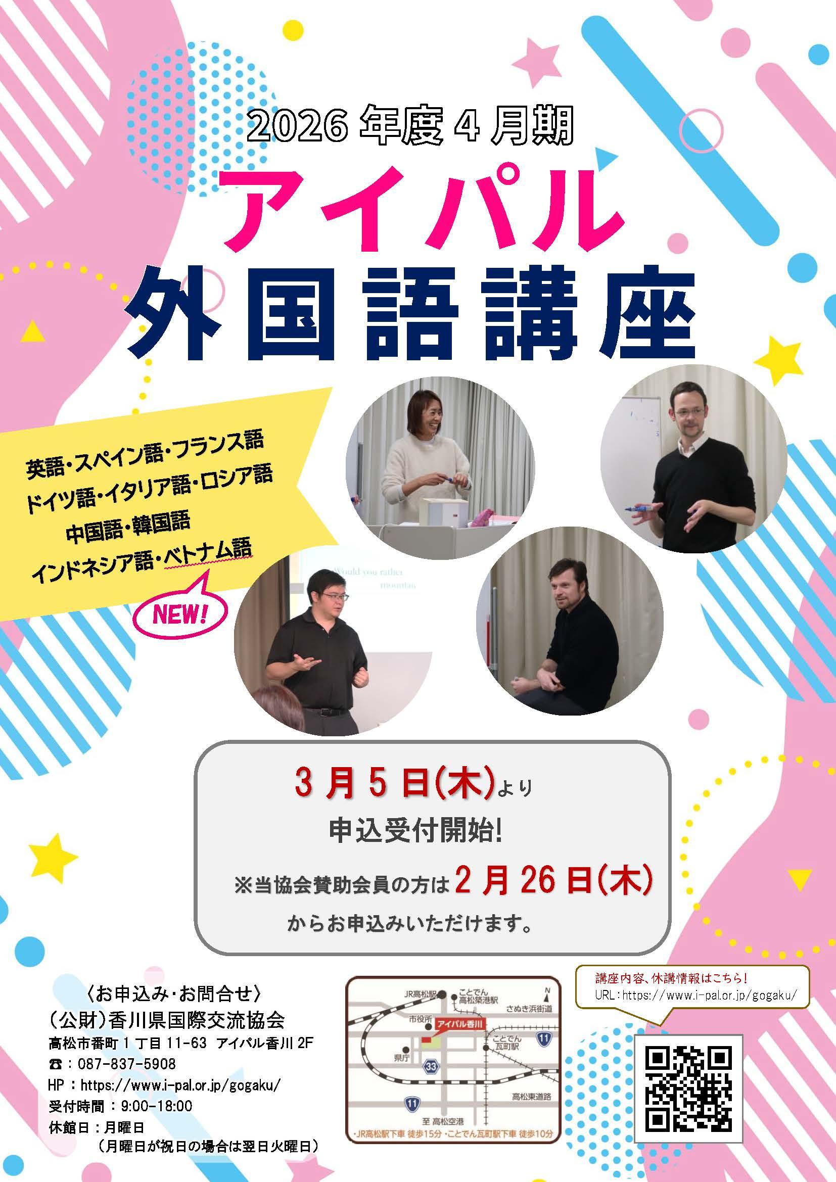 【Email:gaikokugo-kouza@i-pal.or.jp TEL:087-837-5908】