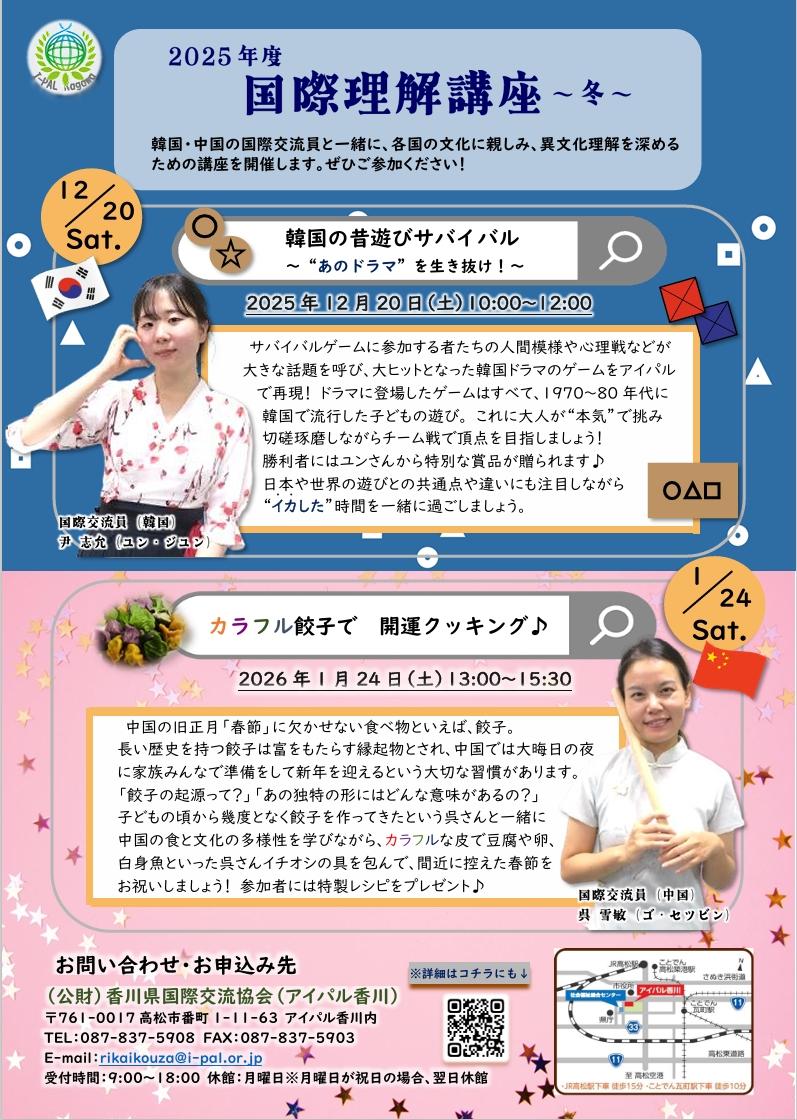 今回は、韓国・中国出身の国際交流員が講師となり、それぞれの国の文化を紹介します。