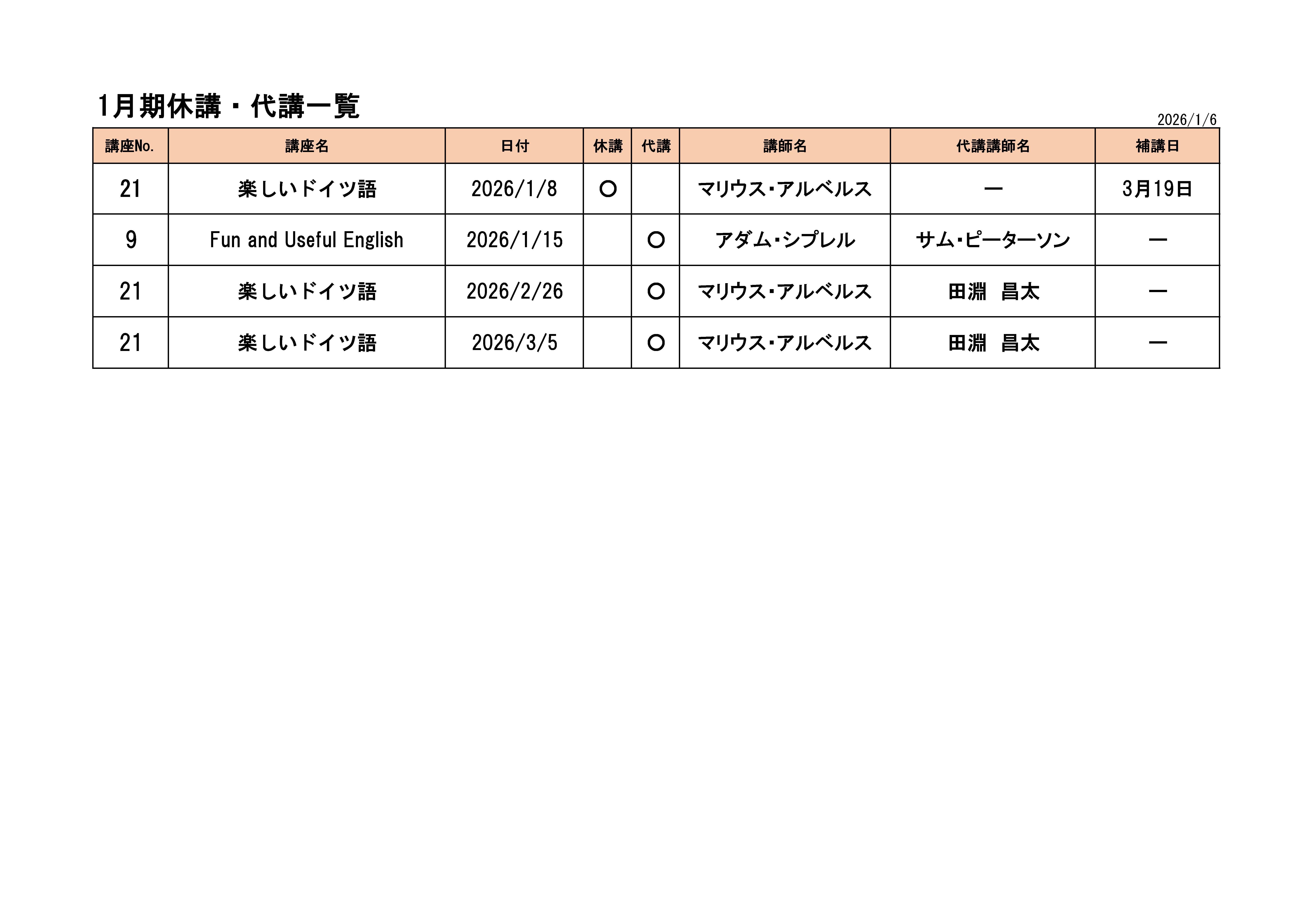 2025年度外国語講座休講・代講のお知らせ